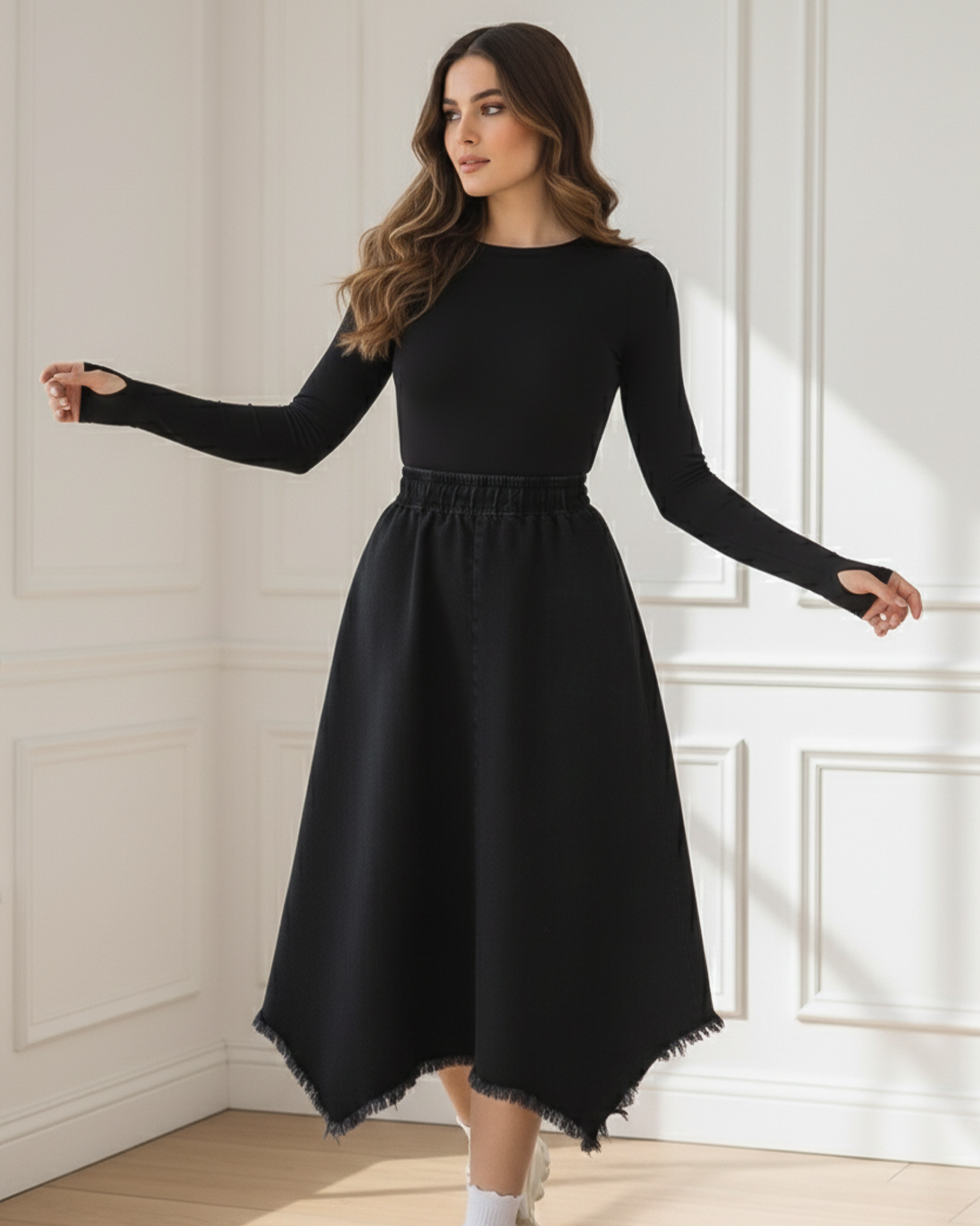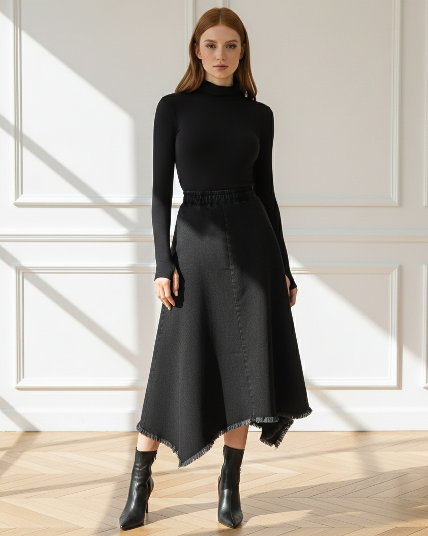 Denim Frayed Skirt